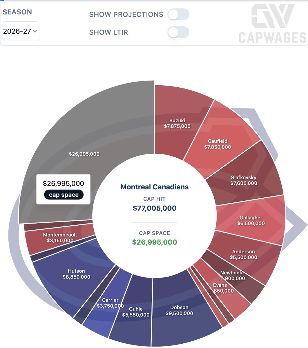 26.995M de 'loose' avant la signature de Matheson, Bolduc, Xhekaj et Dach.